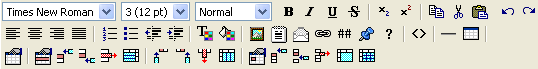 La barre d'outil de l'éditeur propose un ensemble de boutons cliquables pour la mise en forme du texte, l'insertion d'images, de liens, de tableaux, etc... Elle est composée de trois lignes.
