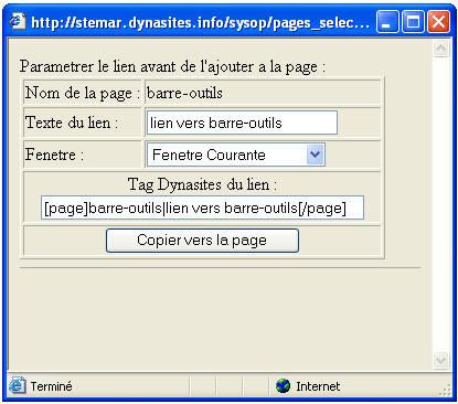 • "Fenêtre" = propose d'afficher la page cible dans la même fenêtre ou dans une nouvelle.